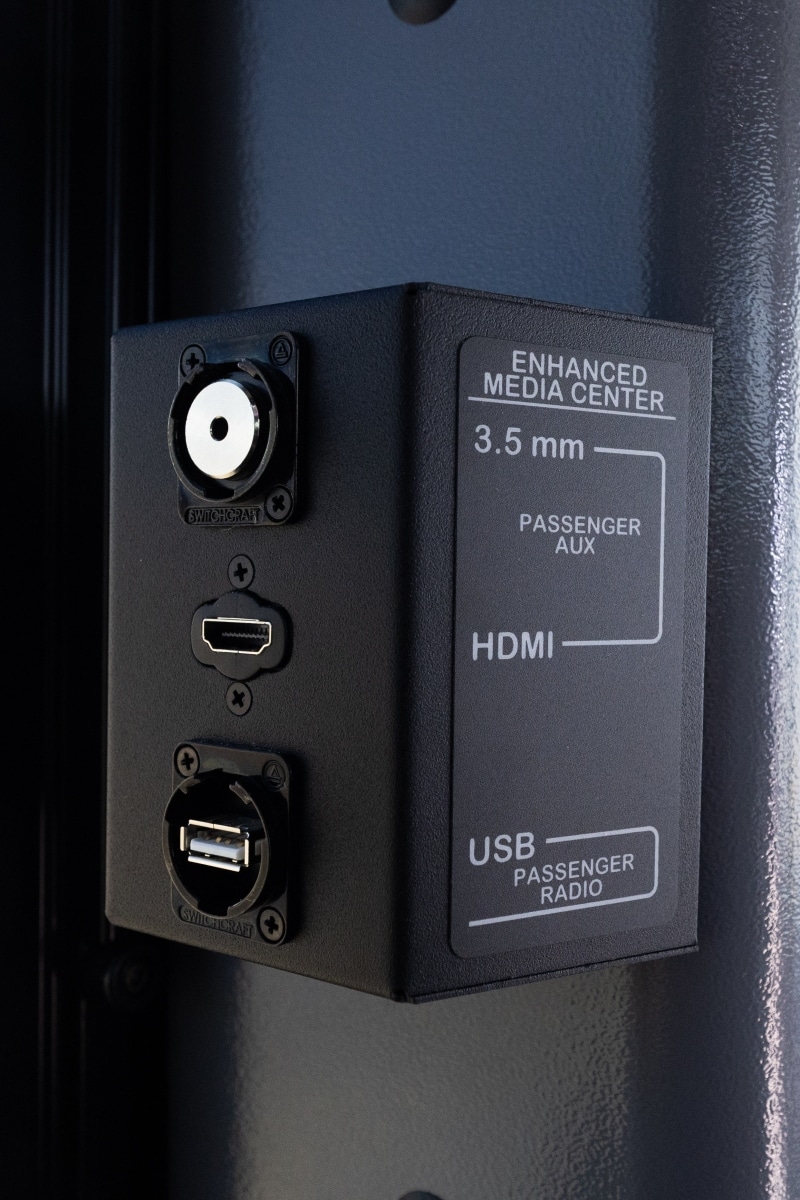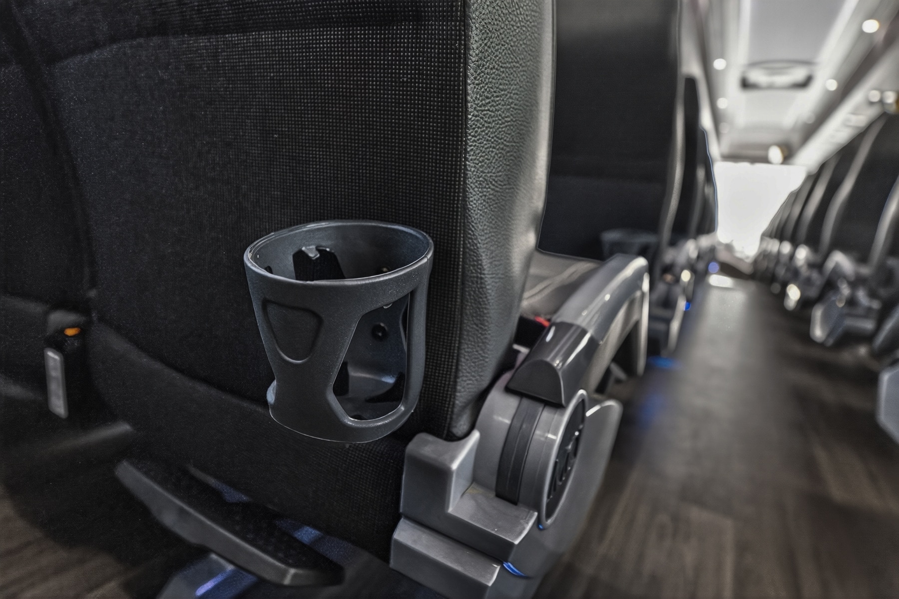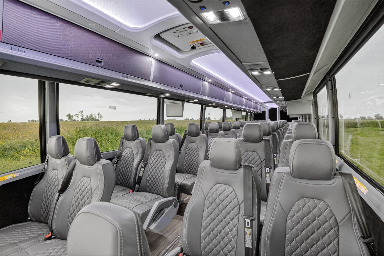 The deluxe coach offers all of the same amenities as the coaches, but with higher finishes. The seats are just as comfortable, and thereโs just as much storage. The seat fabric is more subdued, and the whole interior is calming. Using a deluxe coach will leave your passengers feeling like they are truly traveling in the utmost of comfort and style.